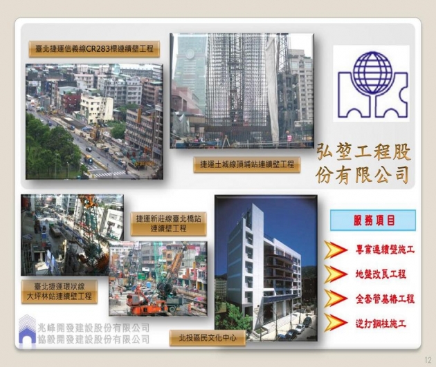 弘堃工程股份有限公司自民國七十八年創立,專業從事基礎工程施工,本著「專業」、「負責」精神,腳踏實地穩健經營,迄今已歷一十九載有餘。為基礎工程專業營造商,對於重大工程環境複雜高度技術性基礎工程均有豐富的經驗。
